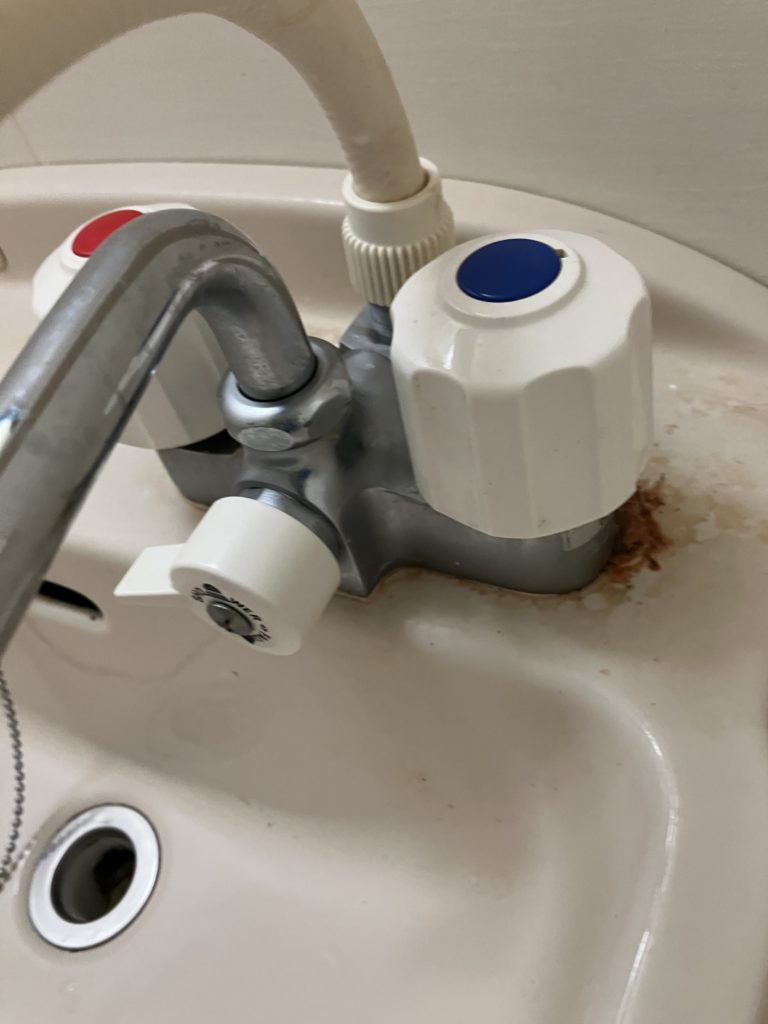 今日はこのように汚れが蓄積してしまった洗面のお掃除!